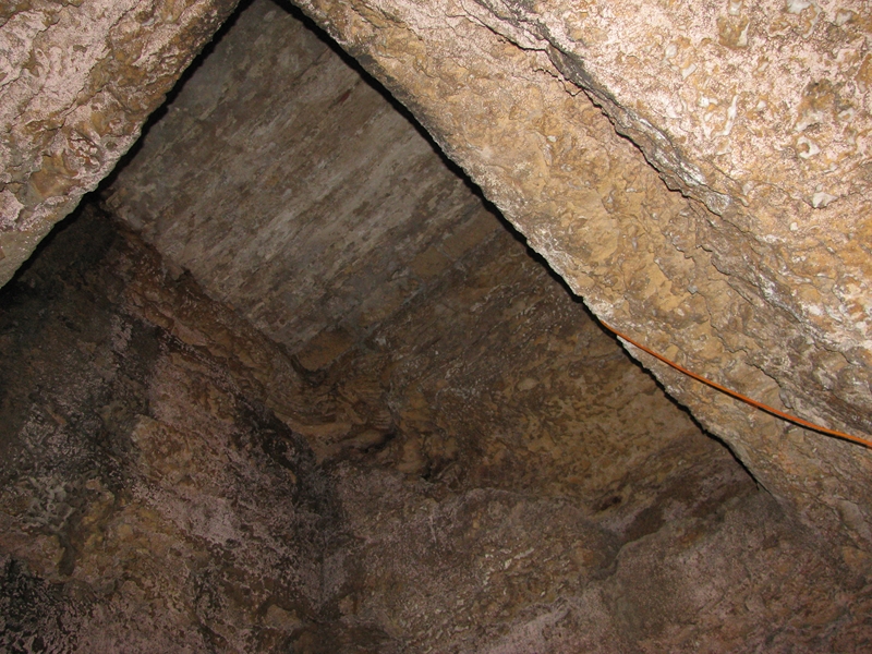 2015, 27 septembre, CREYSSE, balade de la rivière Dordogne EPHEMERES 15 (15) ← Précédent Suivant → Accès au plafond du cluzeau : escalier taillé dans le roc depuis la maison au-dessus.