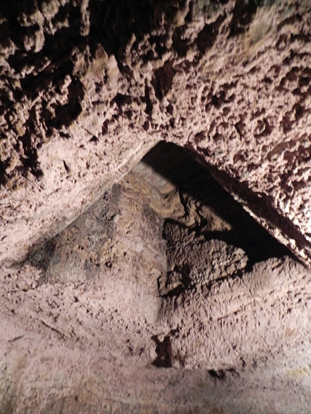2015, 27 septembre, CREYSSE, balade de la rivière Dordogne EPHEMERES 15 (16) ← Précédent Suivant → Accès au plafond du cluzeau : un escalier était taillé dans le roc depuis la maison au-dessus.
