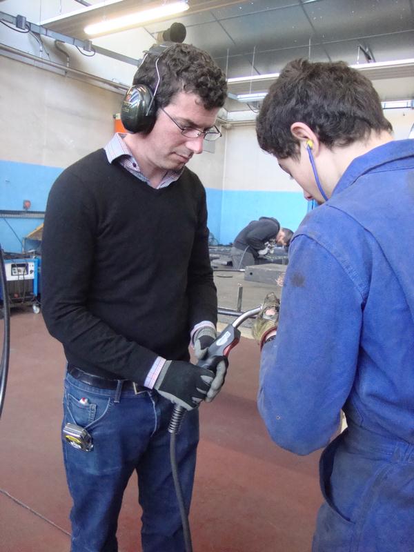 2015 9 avril Pierre Labat Apprentis chaudronniers (16) ← Précédent Suivant → Pierre Labat et un lycéen aux prises avec un problème matériel