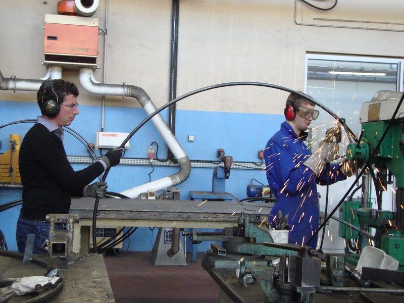 2015 9 avril Pierre Labat Apprentis chaudronniers (2) ← Précédent Suivant → Meuler les soudures (Pierre Labat et un lycéen)