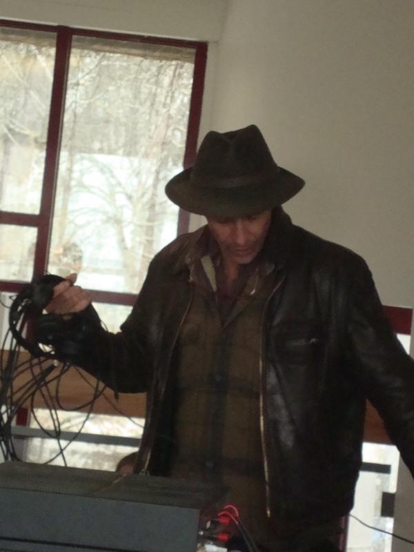 Erik SAMAKH rassemble son matériel avant l’enregistrement de la mise en son des histoires imaginées par les élèves (école primaire de St Germain et Mons)