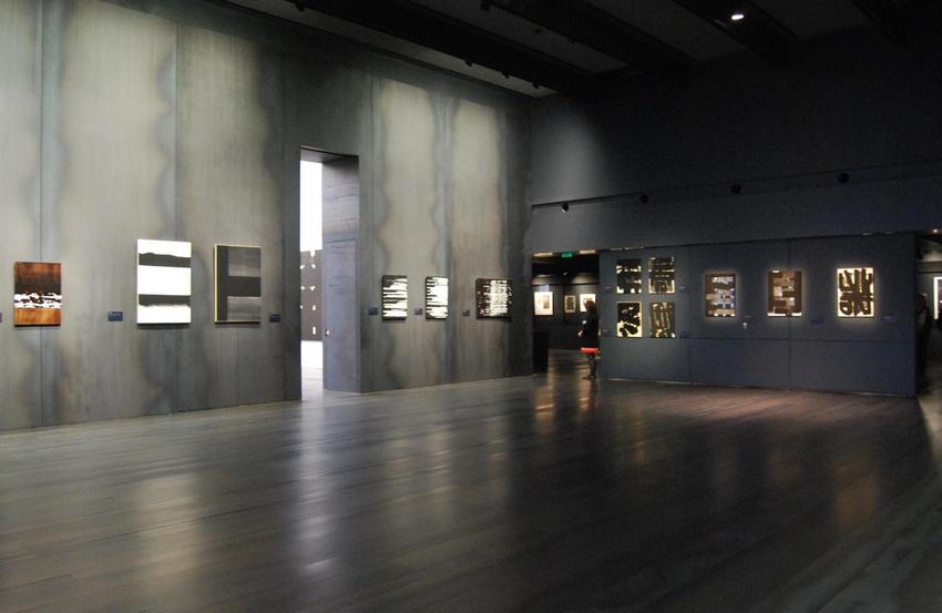 2015 Conférence Pierre Soulages Salle du musée Soulages de Rodez (1) ← Précédent Suivant → Brous de noix, gouaches et encres, Pierre Soulages ; musée Soulages, Rodez ; photo © Julie Lourgant