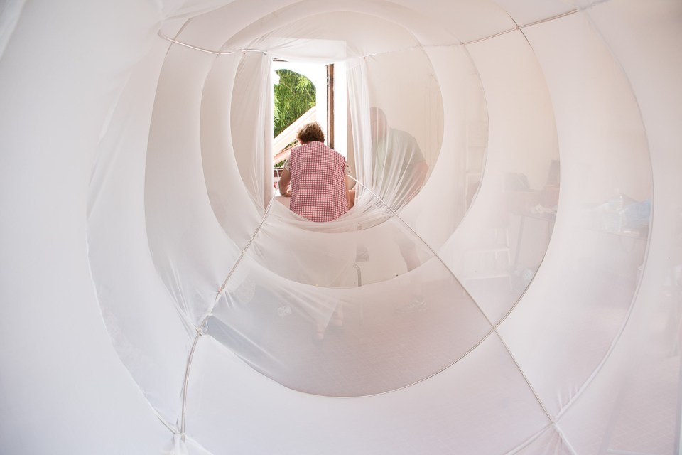 2015 EPHEMERES #5; couture du voilage de « Corridor » de Jean-Luc BICHAUD