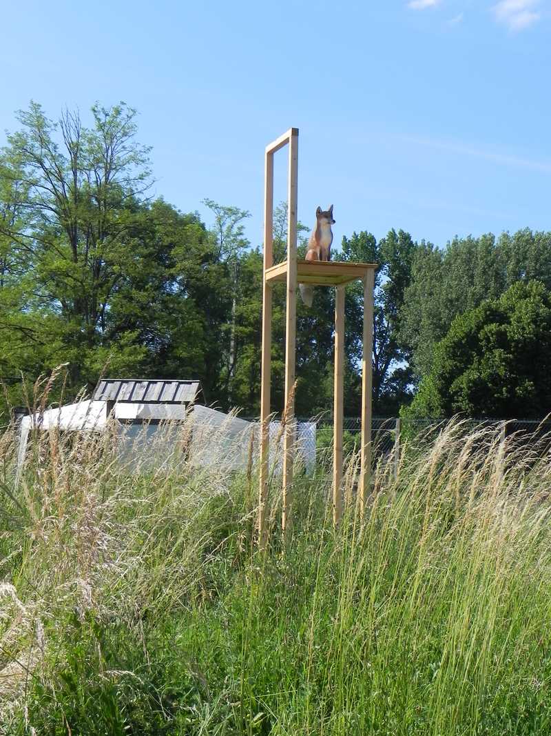 2015 EPHEMERES #5 « les Hôtes du Logis » de Victoria Klotz (renard) ← Précédent Suivant → « les hôtes du Logis », Victoria Klotz, 2015, Biennale EpHémères #5 ; barrage EDF de Tuilières ; photo ©Rives de l’Art