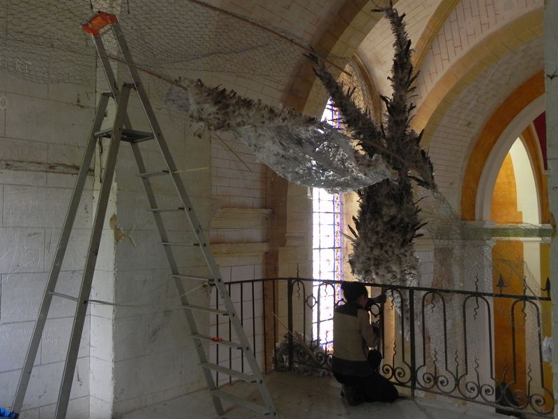 Yushin U Chang, installation de « Voltige » pour la Biennale Ephémères 2015, à Ste Alvère ; photo Les Rives de l’Art