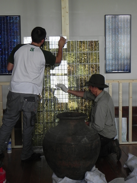 nettoyage des « tableaux-panneaux solaires », Erik Samakh ; installation de « Studiolo », exposition « Résidence de l’Art en Dordogne » et Ephémères 2015