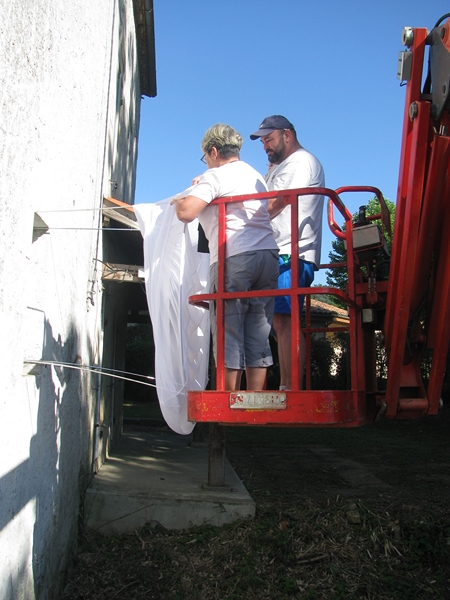 2015 EPHEMERES #5; installation et couture du voilage de « Corridor » de Jean-Luc BICHAUD