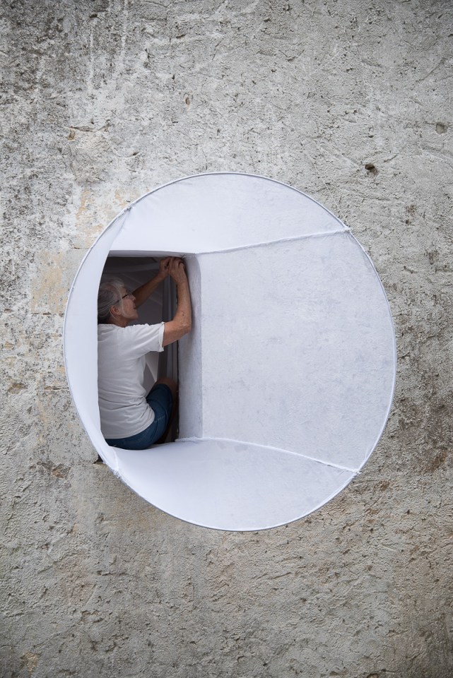 2015 EPHEMERES #5; installation et couture du voilage de « Corridor »de Jean-Luc BICHAUD; photo de A VERGEZ ← Précédent Suivant →