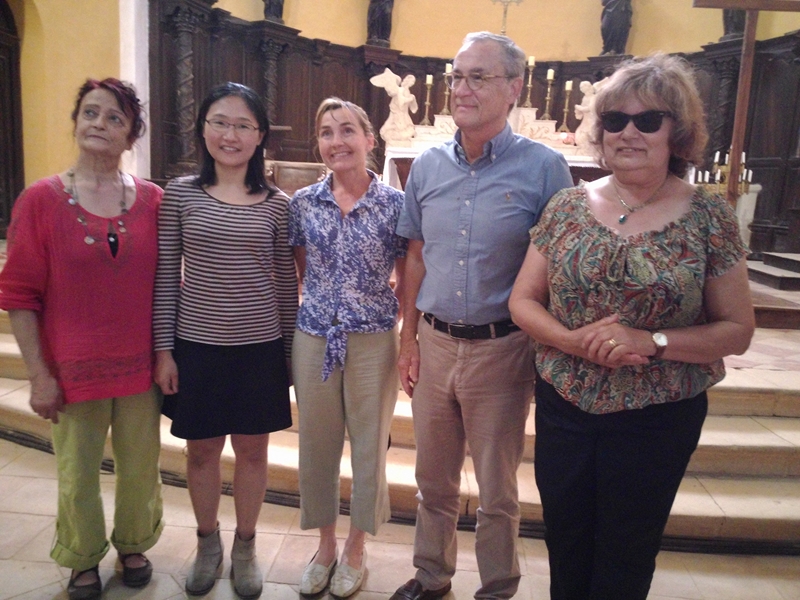2015 vernissage de l’oeuvre de Yuhsin U CHANG (5) ← Précédent Suivant → Marie-Claude FENIE, Yuhsin U CHANG, Maggie GORMAN, M. DUCENE, maire de Ste Alvère, Annie WOLFF, présidente des Rives de l’Art,