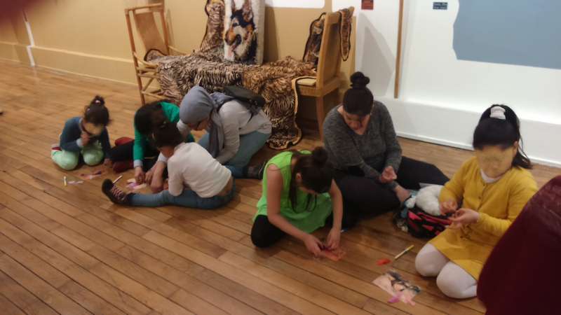 15 avril 2016 Médiation visite expo « Karavan » de Chantal Raguet, Espace Culturel François Mitterrand, Périgueux ; Atelier d’art en famille ; partenariat Rives de l’Art, Secours Populaire et Agence Culturelle Dordogne-Périgord