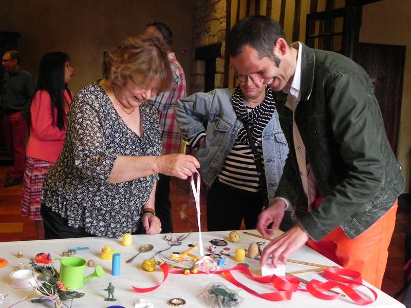 Les adhérents des Rives de l’Art ont offert des petits objets « inutiles » à Jeroen FRATEUR, clin d’oeil à son exposition « Living on Father Nature » au château de Monbazillac pour épHémères-entrActe 2016