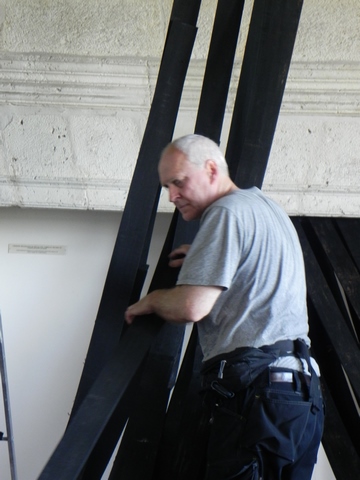 2017 Ephémères : Installation de l’œuvre de Rainer Gross dans le château de Monbazillac ← Précédent Suivant → Rainer Gross installe les lattes dans la salle du château de Monbazillac….