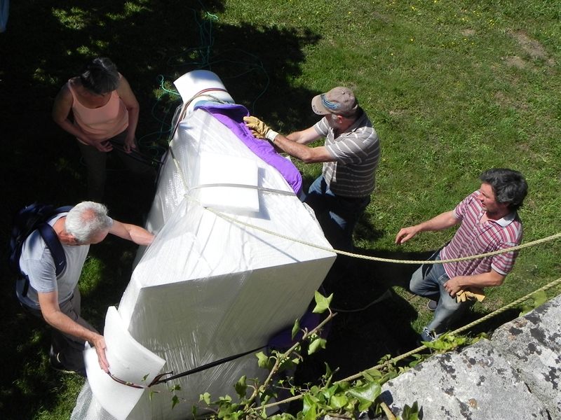 2017 installation des Moulures de Elvire BONDUELLE ← Précédent Suivant → Ouf ! bien arrivée ! On défait cordes et protections.