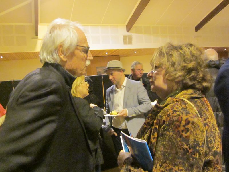 Remise du Prix 2017 du Fonds MAIF pour l’Education : Annie Wolff, présidente des Rives de l’Art (2nd Prix national) en grande discussion avec Yann Arthus-Bertrand ; 30 novembre 2017 à Montmélian en Savoie