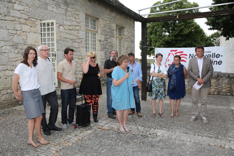 Elvire BONDUELLE, Rainer GROSS, Laurent PERBOS, Elsa TOMKOWIAK, Jean-François NOBLE, Benoît SCHMELTZ, Mme Dominique LAURENT, sous préfète de Bergerac, Mme Régine ANGLARD, vice présidente à la culture au Conseil départemental et Christophe CATHUS, conseiller Régional