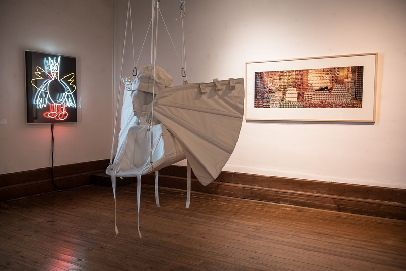 2018 EXPO Frac Limousin Monbazillac ©Alain VERGEZ (3) (Copier) ← Précédent Suivant → De G à D :« le volatile », Alain Séchas ; « Expériences de vol » de Kristina Depaulis ; « The Big Sleep », Christoph Rütiman à l’arrière