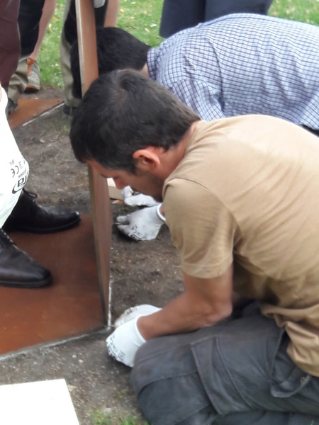 2019 EPHEMERES Installation Felice Varini Chateau Monbazillac (2) ← Précédent Suivant → pendant que les techniciens vissent