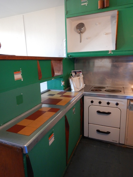 2019 la cité radieuse de Le Corbusier à Marseille (22) ← Précédent Suivant → l’exiguïté de l’espace permet à la ménagère d’avoir à portée de main tous les équipements de la cuisine en pivotant sur elle-même