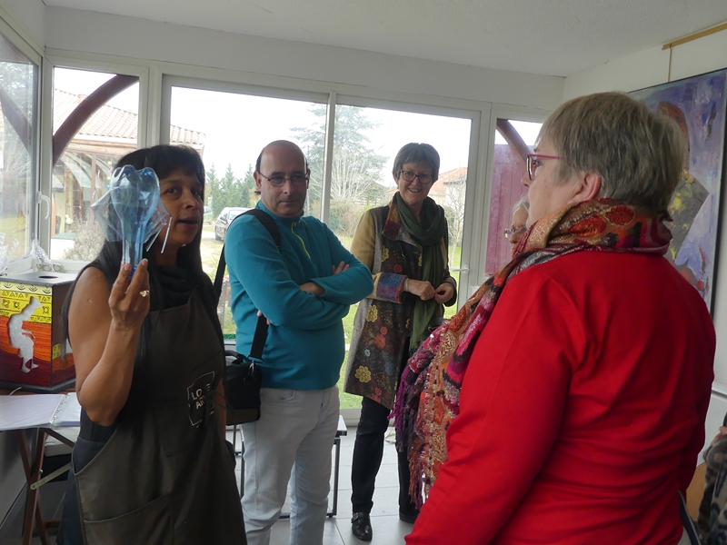 2019 visite de l’atelier de Rosario MARRERO (17) ← Précédent Suivant → mais que vont donc faire Rosario et ses élèves du lycée des métiers avec ces bouteilles ?