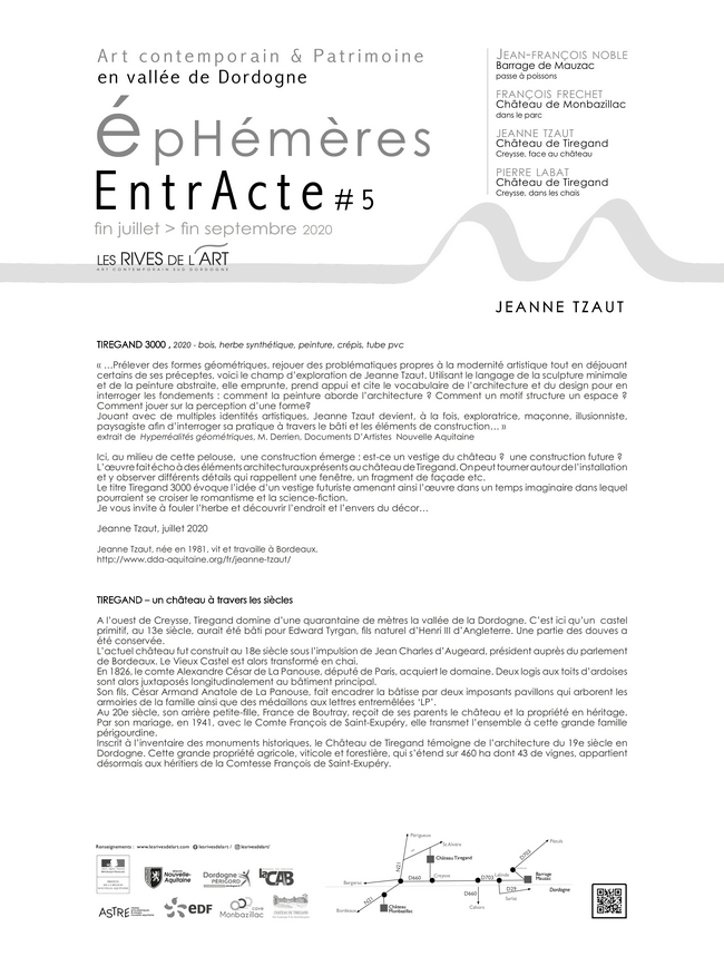 2020 Ephemeres entracte panneau infos J Tzaut Ch Tiregand ← Précédent Suivant → Jeanne Tzaut et Château de Tiregand