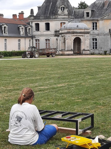 2020 Ephemeres entracte Installation Jeanne Tzaut (6) ← Précédent Suivant → Avec le château sous les yeux pour un dernier coup de pinceau…