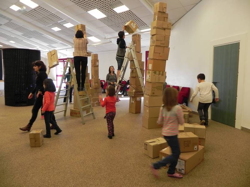 2017 Samedi de lArt YO avec cartons (5) ← Précédent Suivant → Samedi de l’Art en famille, 11 mars 2017 ; atelier « sommaires domiciles domiciles factices », YO