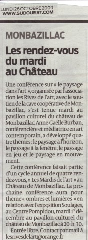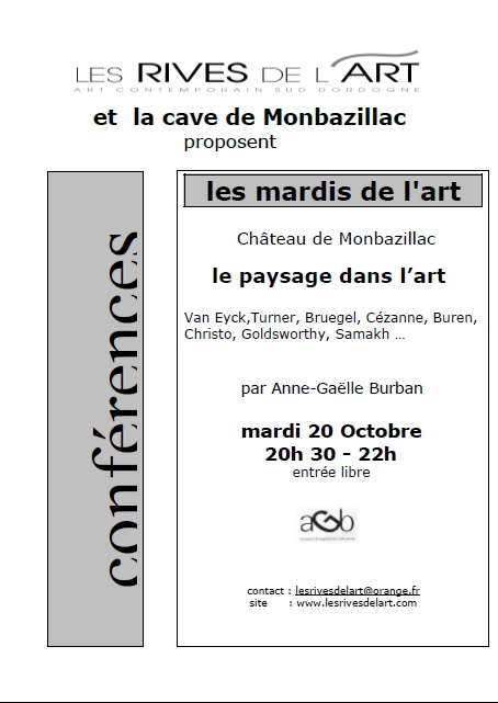 «Le paysage dans l’art» est une conférence à propos de «Paysage traversé» et «Ephémères», manifestations artistiques présentées en vallée de Dordogne.