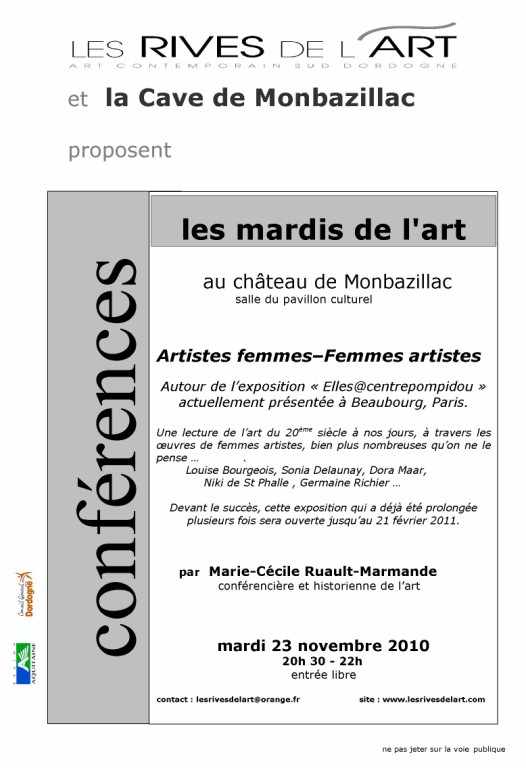 La conférence fait écho à l’exposition « elles@centrepompidou », de mai 2009 à mai 2010, au Centre Pompidou à PARIS. Cette exposition présente les oeuvres de plus de 200 artistes femmes du XXème siècle.