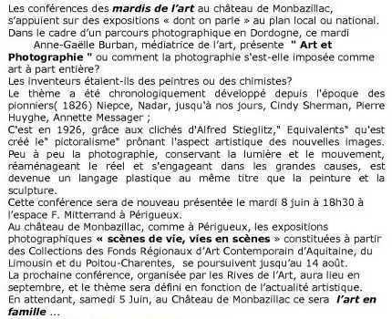 Cette conférence est un écho à l’exposition « Scènes de vie, vies en scène » présentée en simultané à l’Espace culturel François Mitterrand à Périgueux et au château de Monbazillac du 4 mai au 14 août 2010.