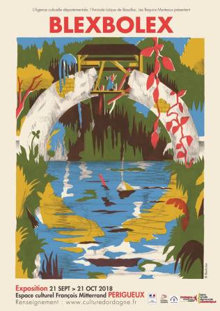 L’Agence culturelle départementale consacre sa première exposition de la saison à Blexbolex, illustrateur, auteur et imprimeur-sérigraphe, à l’univers graphique et narratif singulier. Dans le cadre d’une co-production avec les Requins Marteaux, et à l’occasion du Festival de la BD de Bassillac et Auberoche, cette exposition réunit un ensemble d’œuvres inédites, sélectionnées par Marc Pichelin et Camille de Singly, commissaires de l’exposition. Extrait du Dossier de Presse (Agence culturelle Dordogne-Périgord)