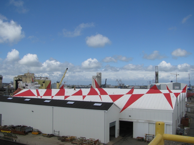 Suite de triangles Felice Varini (1) ← Précédent Suivant → « Suite de triangles », Felice VARINI, St Nazaire 2007 ; Saint Nazaire