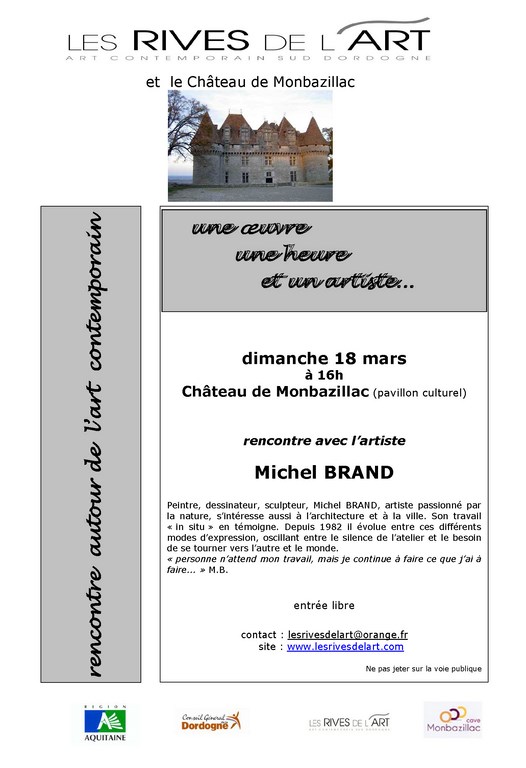 Dans le cadre de ses animations « Une œuvre, une heure et un artiste », au château de Monbazillac, l’association Les Rives de l’Art a accueilli l’artiste Michel Brand, le dimanche 18 mars.