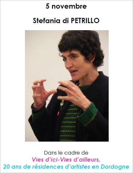 Rencontre avec Stefania di Petrillo, designer, au pavillon culturel du Château de Monbazillac, le 5 novembre 2016 ; organisation Les Rives de l’Art dans le cadre de « Vies d’ici-Vues d’ailleurs, 20 ans de résidences d’artistes en Dordogne »