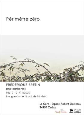 Frédérique Bretin revient à des photographies très épurées, en réaction à la déferlante de sollicitations colorées et surchargées des médias. Ces photographies sont inspirées par son travail du milieu des années 2000 et par les paysages autour de Carlux : l’artiste s’est cantonnée à prendre des photos dans un secteur de 2 ou 3 kms autour de La Gare-Doisneau et de son domicile proche, d’où le titre de l’exposition Périmètre zéro. On retrouve ses paysages et sujets, sur fond d’atmosphère emplie de brouillard, dans des photographies de petit et moyen format, présentées dans des cadres américains noirs.