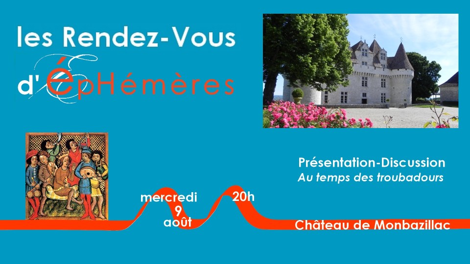 Jean-François Gareyte, médiateur culturel à l’agence départementale Dordogne Périgord, va nous parler de l’origine, du développement, de l’apogée et de la fin de ce mouvement artistique. Il nous parlera également de son influence en Europe sur une période de 2 siècles. Parmi ces troubadours, quelques grands artistes périgourdins.