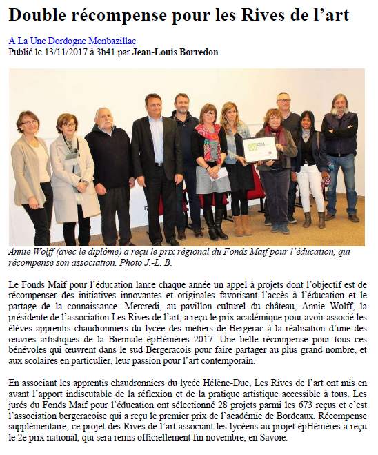 2017 Prix Fonds MAIF regional Article Sud Ouest 13 11