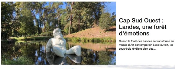 → France 3 Nouvelle Aquitaine/émission Cap Sud Ouest d’Eric Perrin : Les Landes, une forêt d’émotions, le dimanche 3 février 2019 ; on y retrouve la Forêt d’Art Contemporain et Christophe Doucet