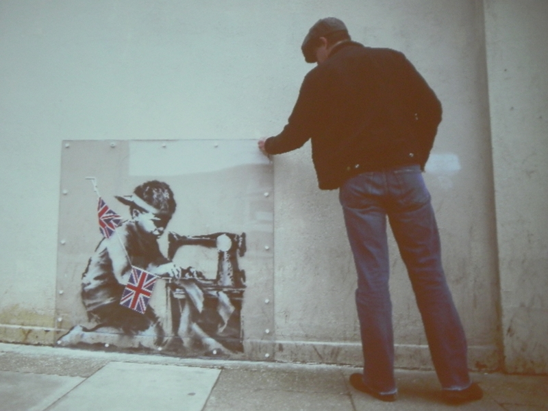BANKSY, Slave Labour découpé sur le mur d’un magasin Poundland de Tottenham, mars 2013- conférence « la renaissance des murs peints » ← Précédent Suivant → BANKSY, « Slave Labour » découpé sur le mur d’un magasin Poundland de Tottenham, mars 2013- conférence « la renaissance des murs peints »