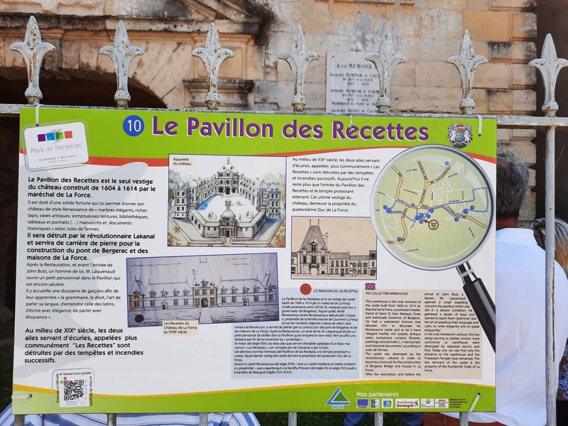 Merci à Jérôme Chassaigne qui nous a permis de voir l’arrière du Pavillon des Recettes depuis sa propriété sise à l’emplacement du château de La Force et de son parc.