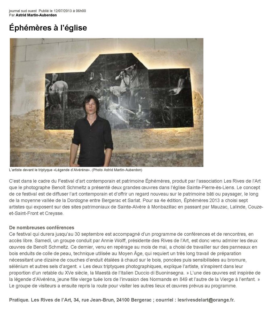 dans le cadre du parcours d’art contemporain et patrimoine : EPHEMERES 2013