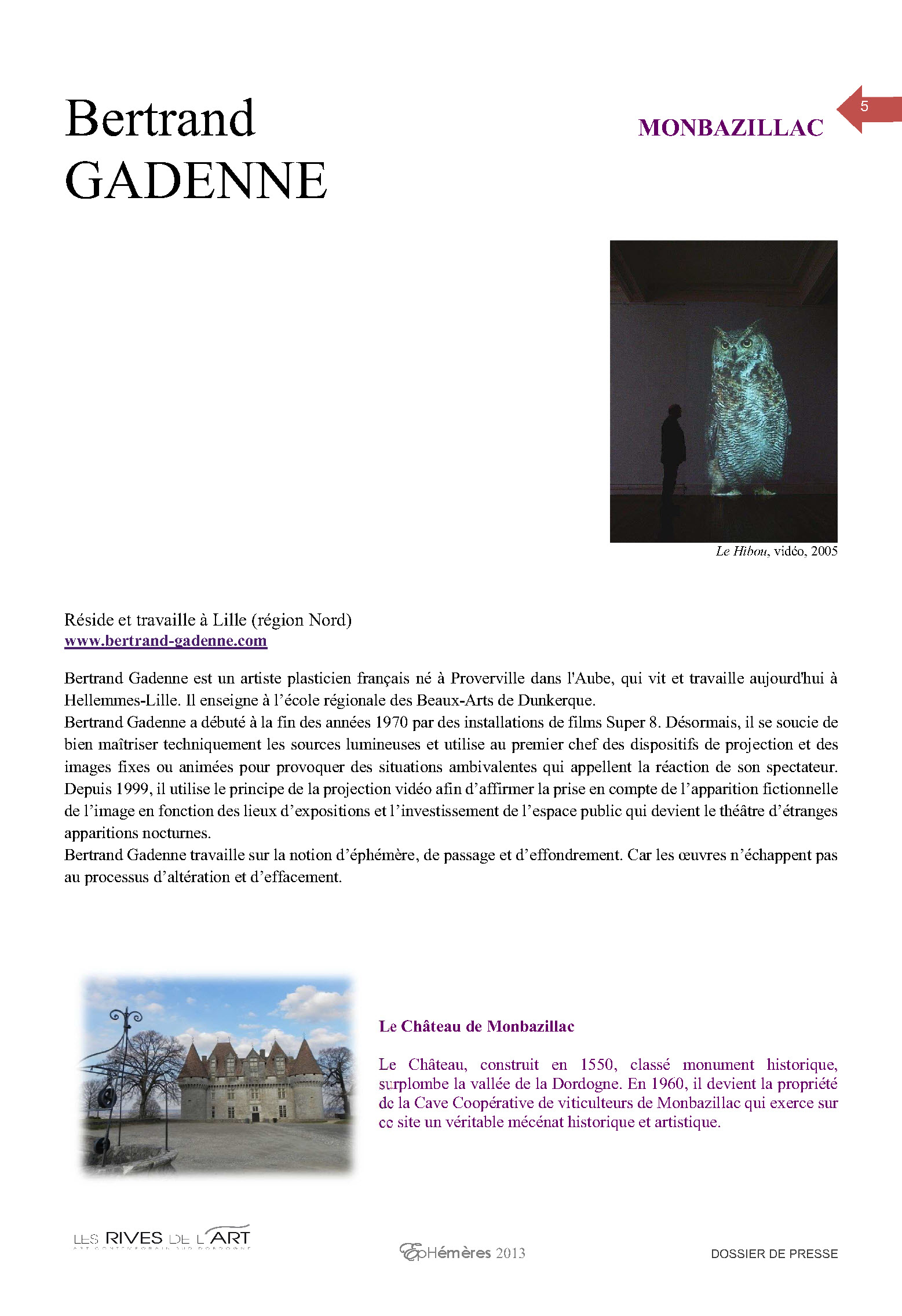 dans le cadre du parcours d’art contemporain et patrimoine EPHEMERES 2013