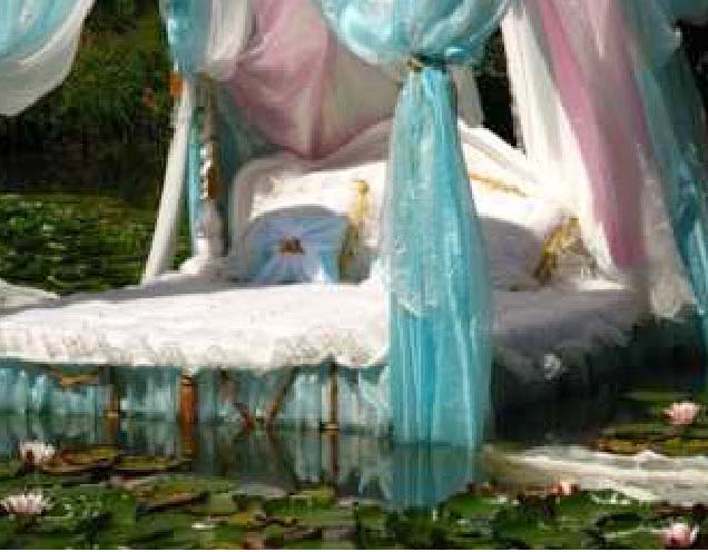 Après le bassin des Tuileries à Paris et les canaux d’Amsterdam, Vincent OLINET pose avec délicatesse « pas encore mon histoire » sur l’eau de lac de LANQUAIS, au pied du château.