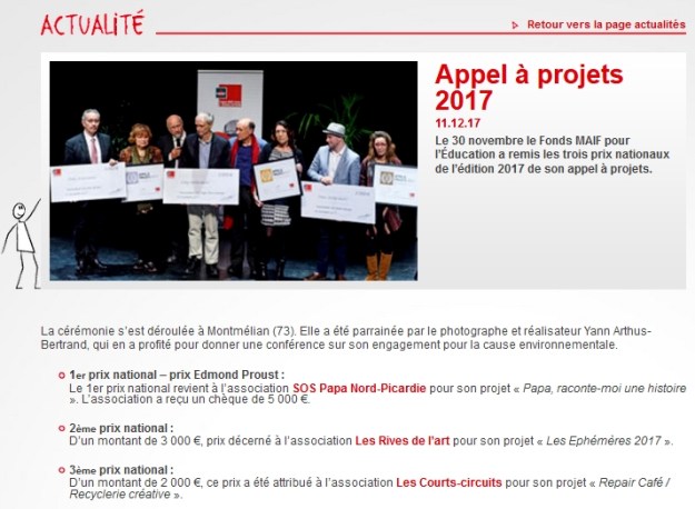 → Cérémonie de remise des Prix nationaux 2017 du Fonds MAIF pour l’Education