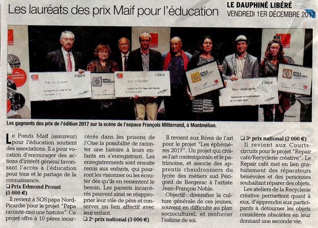 Prix national du Fonds MAIF pour l’Education, le 30 novembre 2017 à Montmélian en Savoie : les lauréats 2017