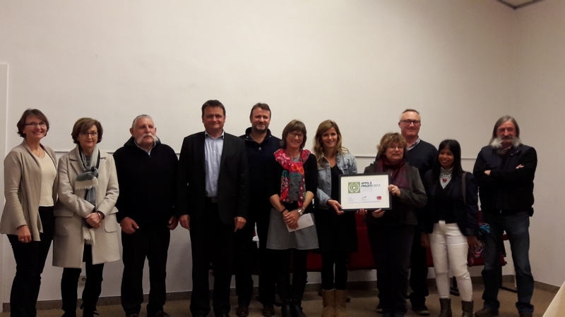 De gauche à droite : Mme Chevalier, Conseil Départemental de la Dordogne ; Mme Vergez, conseillère municipale adjointe à Lalinde ; M. Brunat, maire de Verdon ; M. Cathus, Région Nouvelle-Aquitaine ; M. Vasquez, Mme Pastor-Duby, Mme Fortin, représentants de la MAIF ; Mme Wolff, présidente des Rives de l’Art ; M. Chiarla et Mme Naissant-Marrero, professeurs au Lycée des Métiers Hélène Duc-Sud Périgord de Bergerac et l’artiste Jean-François Noble.
