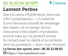 Merci à Sylvain Bourget, régisseur de la Biennale épHémères 2017, à Jean-Pierre et à Hugues mais aussi à Marie-Claude et Annie, pour l’aide apportée à Laurent PERBOS.