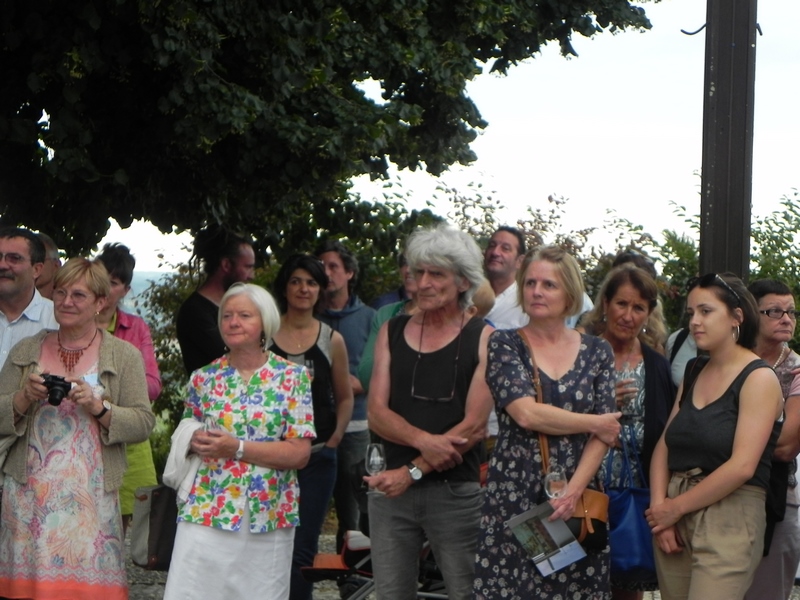 2017 EPHEMERES vernissage au château de Monbazillac (3)a ← Précédent Suivant → A droite, Elisabeth Bourgogne et Lisa Buhler, du service communication de l’Agence culturelle parmi le public très attentif…