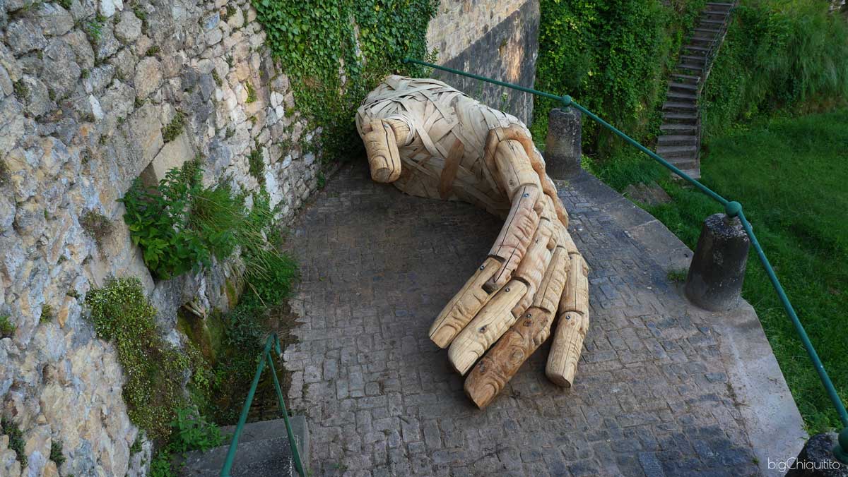 Mano à mano, Pedro Marzorati ; DR photo©bigChiquitito/ADAGP ; Biennale épHémères 2019, édition 7; port de Tuilières à Mouleydier(Dordogne) ; Association Les Rives de l’Art