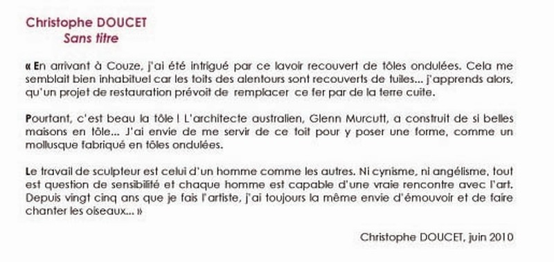dans le cadre du parcours d’art contemporain et patrimoine EPHEMERES 2010