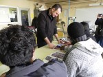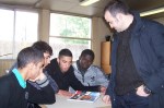 Première rencontre entre les élèves de la classe de 1ère CAP-RCI (réalisation chaudronnerie industrielle) du lycée des Métiers de l’ALBA à BERGERAC et l’artiste.